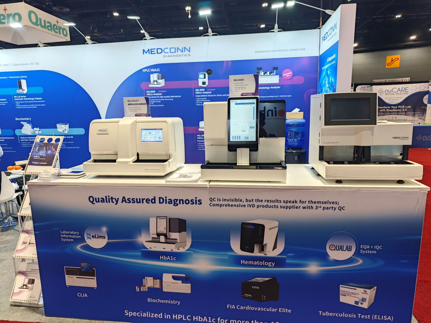 A focal point of Medconn’s exhibition was the HPLC HbA1c Analyzer, MQ series, presented in four distinct models. Among them, the MQ-3000 garnered significant attention, having received FDA 510(k) clearance this year. Utilizing the gold standard HPLC method, the MQ-3000 delivers accurate and reliable results for HbA1c testing, common hemoglobin variant detection (C, D, E, S), and thalassemia screening (HbA2, HbF).