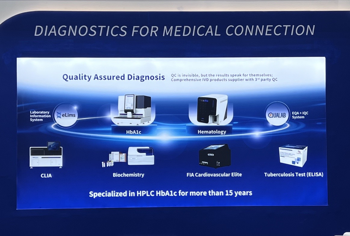 The highlight of our presentation was Medconn's premium HPLC HbA1c analyzer, engineered for precise diabetes management and hemoglobinopathy testing. The MQ-8000 model garnered particular attention as part of an integrated Hematology-HbA1c automated line, exemplifying our dedication to comprehensive laboratory solutions. This advanced HbA1c system offers multi-parameter detection, including accurate measurement of HbA1c, common variants, HbA2, and HbF, making it an invaluable tool for both diabetes care and thalassemia screening.