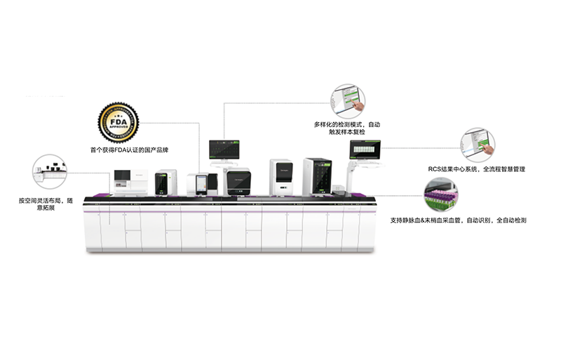 DX-9000一站式蜂巢流水线,一管血实现糖化血红蛋白和血液分析(血细胞5分类,CRP,SAA)等多项目的快速检测,并提示高达7种血红蛋白变异体,搭载智能软件管理系统,综合提升医学检验效率。