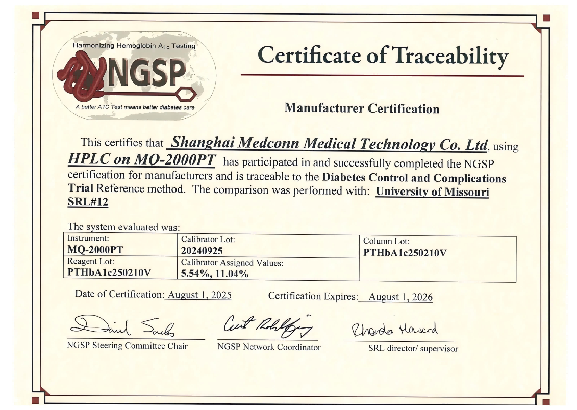 采用高效液相色谱法(HPLC),产品已连续13年获得NGSP与IFCC双重国际认证,检测结果符合全球标准,确保临床准确性。